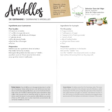 Petite histoire / Les Aridelles sont très appréciées dans la vallée Some history / Aridelles come from the Tarentaise valley. The name